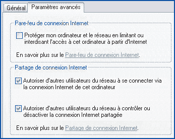 Pour partager votre connexion à Internet, vous devez intervenir sur chacun des micros concernés par votre réseau.Sur le micro connecté à Internet :Dans le menu Démarrer, cliquez sur Paramètres, Panneau de configuration, puis sur Connexions réseau.Cliquez avec le bouton droit de la souris sur l’icône correspondant à votre connexion à Internet, puis choisissez Propriétés.Activez l’onglet Paramètres avancés, et cochez la case Autoriser d’autres utilisateurs du réseau à se connecter via la connexion Internet de cet ordinateur. Cliquez sur OK pour fermer la
