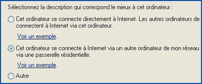 Cet ordinateur se connecte à Internet via un autre ordinateur de mon réseau domestique ou via une passerelle résidentielle et cliquez sur Suivant trois fois de suite :
