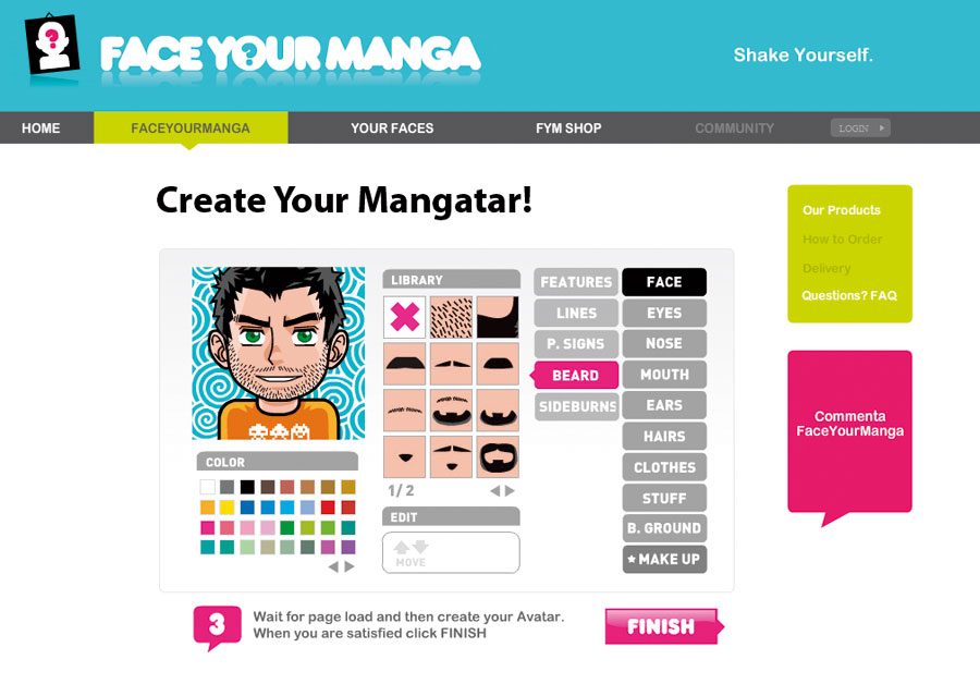 Ceux réalisés à partir du site Face your manga, à l’aspect très moderne, gagnent de plus en plus de réseaux sociaux et de messageries instantanées. Bien qu’en anglais, le logiciel de création est facile d’emploi. Il suffit de cliquer sur chaque bouton un par un, et de choisir un élément. Les visages sont finement détaillés avec rides, taches de rousseur, touches de maquillage, piercing, boucles d’oreilles, etc. Le vestiaire, fourni, autorise la superposition de vêtements pour des tenues très personnelles. Contre renseignements (adresse électronique et date de naissance), on reçoit son avatar par mail.