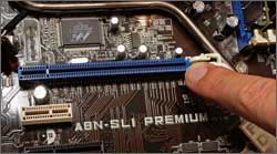 Bien entendu, une carte graphique PCI-Express ne se connecte que dans un slot PCI-Express 16X, et une carte graphique AGP que dans un slot AGP. Il y a incompatibilité totale entre les deux connecteurs.Lorsque vous avez repéré le connecteur (c’est le slot d’extension le plus proche du processeur), insérez la carte graphique.
