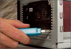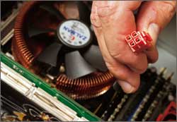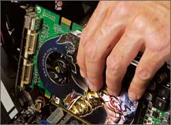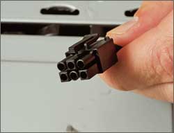 puces 3D très performantes, comme la nôtre, utilisent une connexion de type PCI-Express (encore un nouveau connecteur d’alimentation). Ce connecteur se situe toujours à l’intérieur du micro, à l’arrière de la carte graphique.Les alimentations qui ne disposent pas de ce type de connecteur nécessitent un adaptateur ?” généralement livré avec la carte graphique ?”, qui transforme deux prises Molex en une prise PCI-Express. Sinon, il