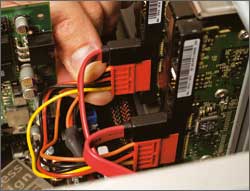 Les disques durs que nous avons choisis utilisent des connecteurs d’alimentation S-ATA. Certains disques utilisent des connecteurs Molex, d’autres disposent parfois de deux types de prises, auquel cas il faut n’en utiliser