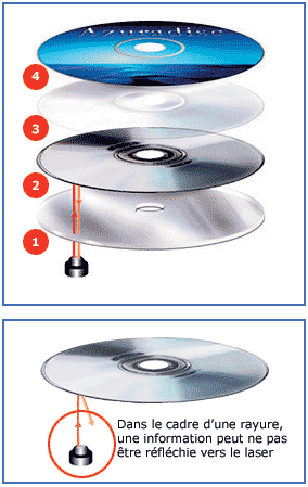 En cas de rayure, une information peut ne pas être réfléchie vers le laser.