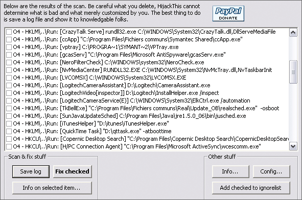 Voici un programme particulièrement pratique… et particulièrement incompréhensible pour les néophytes. HijackThis est capable de dresser la liste de tous les programmes qui se lancent au démarrage de votre machine, et
