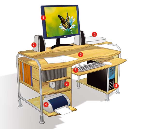 Visites de magasins, épluchages de catalogues…, malgré tous nos efforts, le bureau parfait est resté introuvable ! Trop souvent, l’esthétique prime sur l’aspect pratique et les fabricants ont tendance à oublier qu’un meuble informatique doit avant tout être confortable ?” voir à ce sujet nos conseils d’ergonomie. Afin de vous orienter dans le choix d’un meuble pour votre coin informatique, voici un condensé des meilleures idées rencontrées dans notre recherche. Pour ce meuble ‘ idéal ‘, il est vrai que nous ne nous sommes pas souciés de la place qu’il prenait. Et il faut reconnaître qu’il est plutôt encombrant !Aussi, avant de vous lancer à la recherche du meuble adéquat, commencez par prendre les mesures de l’espace dont vous disposez, puis faites une liste des éléments que vous souhaitez y faire tenir.