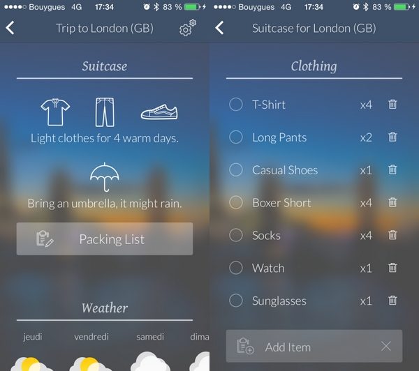 Préparer ses affaires pour partir en vacances n’est pas un plaisir partagé par tous. Si vous êtes du genre stressé, inutile de créer des listes sur papier, il y a aussi des applications pour ça. T’as tout ? vous épaulera dans la préparation de vos bagages en vous proposant de créer des listes d’affaires à emporter avec vous. L’application propose des modèles de listes toutes prêtes que vous pouvez adapter à votre convenance. Vous aurez donc l’avantage de pouvoir vérifier si vous avez vraiment tout, et parfois même un peu plus à l’aide des suggestions d’objets dont vous aviez oublié l’existence. Dans un genre plus élaboré, iPacking vous assiste dans la conception de la liste d’objets indispensables à emporter avec vous. Pour cela, l’application dispose d’une base de données forte de 340 objets que vous êtes susceptible de vouloir emmener avec vous et que vous pouvez parfaitement compléter. Principal avantage de cette solution : les listes thématiques qu’elle inclut nativement. Pour aller encore plus loin, et surtout si vous êtes prêt à faire totalement confiance à votre iPhone, Travel Butler vous prend littéralement par la main pour préparer votre sac. Entrez simplement le nom de votre destination ainsi que la date de votre périple, et l’application vous indique le nombre exact de sous-vêtements et de chaussettes dont vous aurez besoin pour vos vacances. Idéal si vous vous y prenez à la dernière minute, Travel Butler vous aide même à ne pas oublier votre chargeur d’iPhone, votre passeport ou encore votre carte d’embarcation.