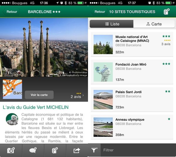 Certains envisagent leurs vacances allongés sur la plage avec une paire de lunettes de soleil sur le nez et un verre de cocktail à la main tandis que d’autres y voient l’opportunité de découvrir le monde et de s’instruire. Si vous êtes de ceux-là, vous pouvez d’ores-et-déjà préparer vos visites avant de partir en consultant Mobilytrip, une application permettant de télécharger des guides de voyage pour les villes du monde entier. Ces guides sont essentiellement composés de descriptions et d’images issues de Wikipedia dans une mise en page reprenant les codes des guides touristiques. Mais la référence incontestable est sans nul doute Michelin Voyage. L’application de Bibendum répertorie 30 000 sites touristiques du monde entier sélectionnés par le Guide Vert Michelin. Vous trouvez pour chaque site, la description du Guide Michelin, mais aussi des photos et des recommandations, ainsi que les avis d’autres voyageurs. Notez que Michelin Voyage vous autorise à télécharger vos carnets de voyage afin de pouvoir les consulter gratuitement hors connexion, idéal à l’étranger.