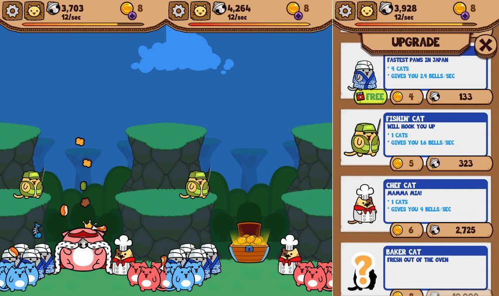 Plus complexe qu’il en a l’air, l’objectif de ce Cookie Clicker version boule de poils consiste à automatiser vos tâches au fil des niveaux. Plus vous gavez sa majesté, plus vous collectez de pièces et de grelots. Utilisez ces récompenses pour recruter des minions nourriciers et augmenter leurs capacités d’approvisionnement afin qu’ils puissent sustenter sa Grâce en votre absence.