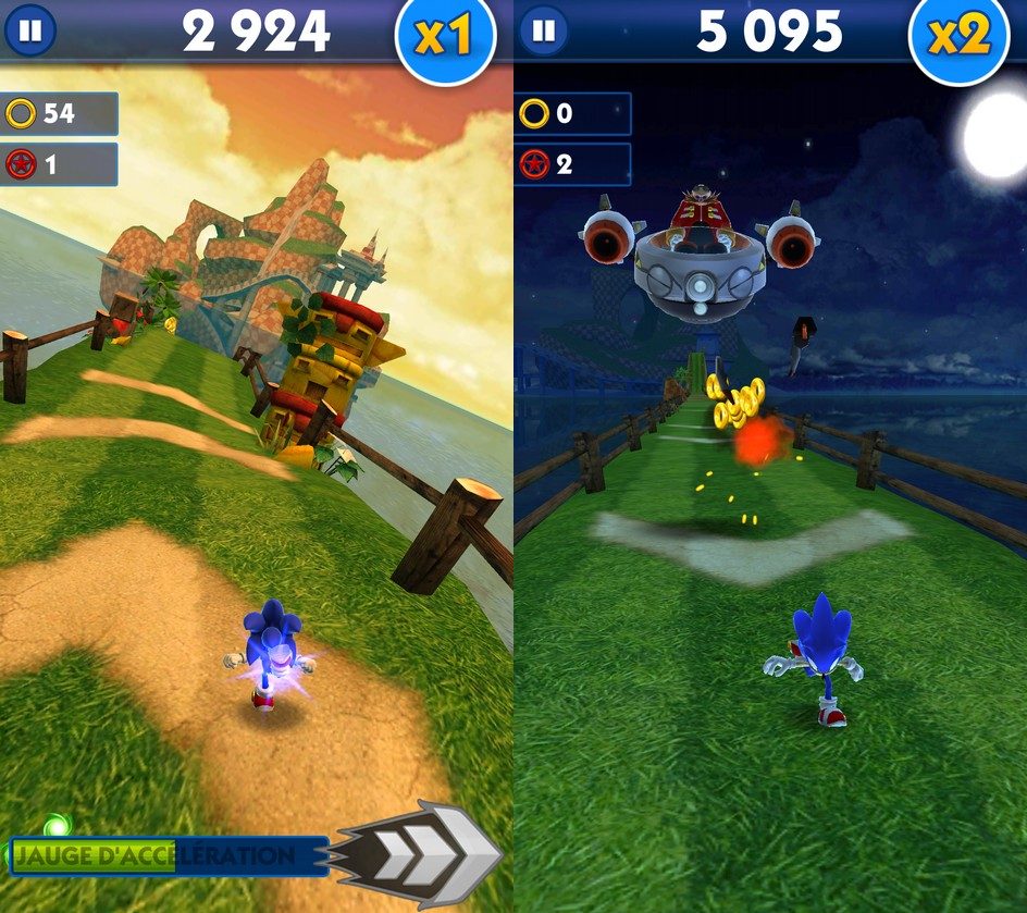 À la manière de Minion Rush, Sonic Dash offre consistance et dynamisme à son gameplay traditionnel. Plus vous courez, plus vous remportez de récompenses pour investir dans de nouveaux objets et débloquer des personnages inédits. Les affrontements contre des boss issus de l’univers de Sonic proposent de réveiller les vieilles animosités qui opposent le hérisson à ses ennemis historiques.