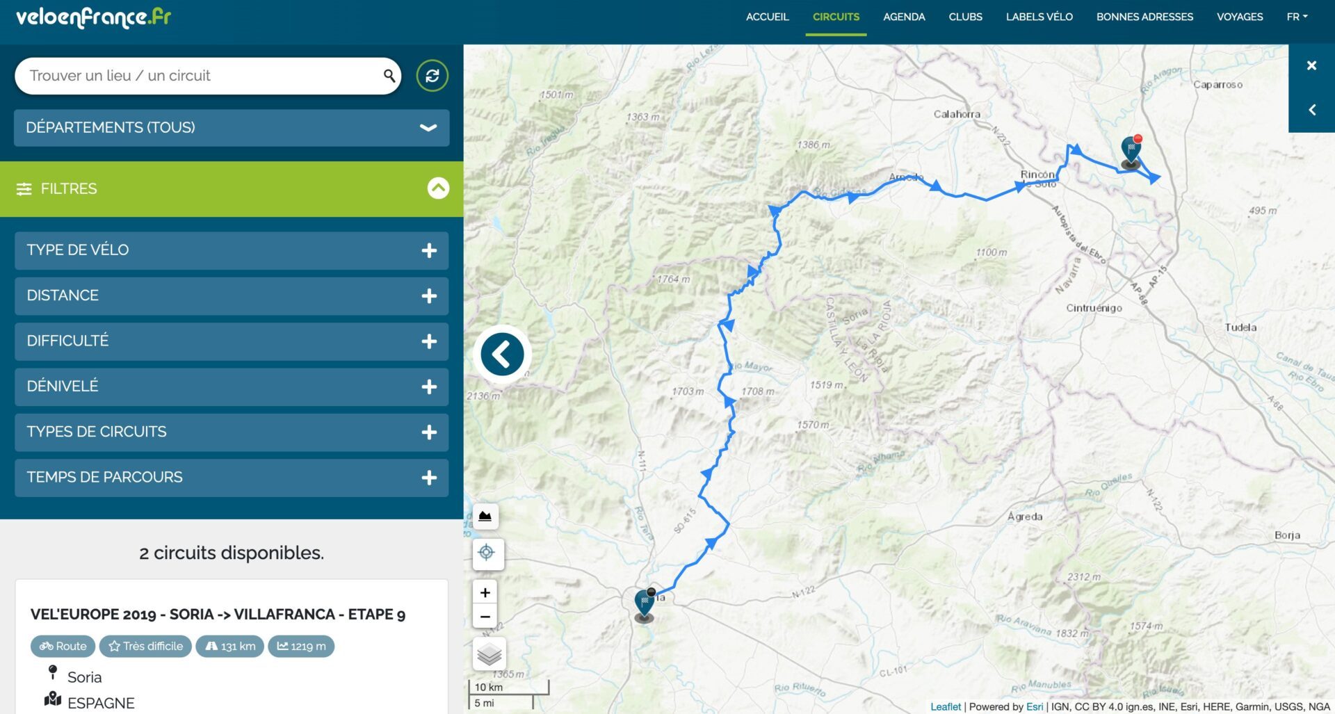 Deuxième alternative plus exhaustive : Vélo en France. Le site officiel de la Fédération française de cyclotourisme vous permet de trouver des circuits cyclistes sur mesure mais déjà répertoriés. La plupart des circuits sont ultra-précis et plutôt non-conventionnels. Pour trouver l’itinéraire parfait, le site vous propose un large panel de critères de recherche : par départements, par type de vélo, selon la distance, la difficulté ou encore le dénivelé, mais aussi le type de circuits (boucles, évènements, etc.) et enfin, selon le temps estimé de votre parcours. Les itinéraires sont ensuite classés grâce à des icônes qui vous donnent en un clin d’œil un aperçu du trajet : est-il accessible, facile, long, vallonné ?