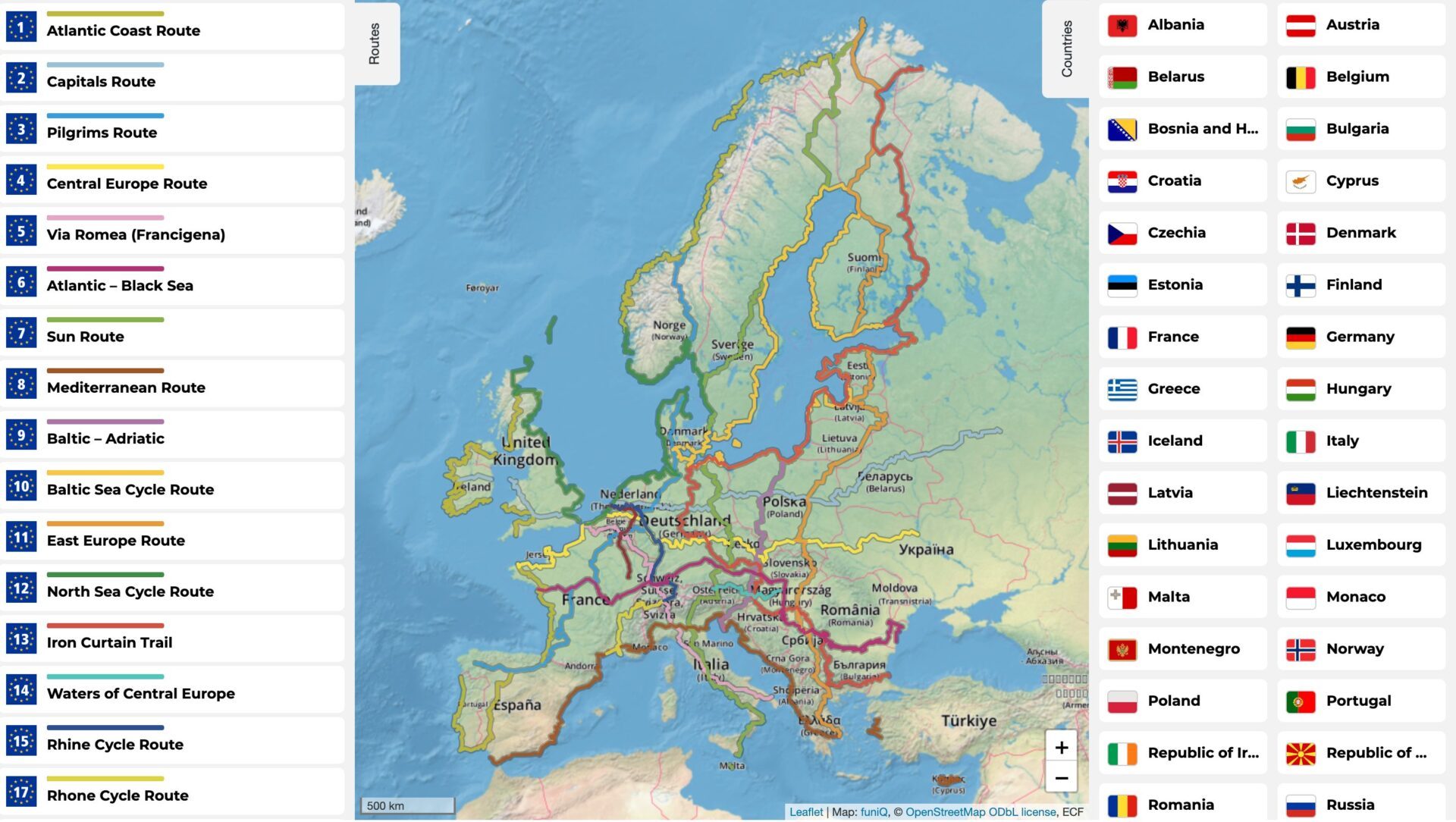 Ne paniquez pas face au manque criant d’ergonomie et au design plutôt old-school d’Eurovelo qui ne rendent pas hommage au travail précis d’élaboration des trajets à vélo répertoriés sur le site. Fait pour « découvrir l’Europe à vélo », il vous propose des trajets transfrontaliers dans plus de 32 pays. Une carte numérique permet d’avoir en un clic les trajets élaborés soigneusement par des professionnels du vélo et du tourisme partout en Europe. Pour chaque trajet proposé, une carte au format PDF (façon fascicule – aussi complet que désuet) est disponible, accompagné d’un court texte de description traduit en quatre langues. Malgré une absence totale d’esthétisme, cet annuaire s’adresse à ceux qui veulent traverser l’Europe en long, en large et en travers. Et, peut donner aux autres des idées de voyages.