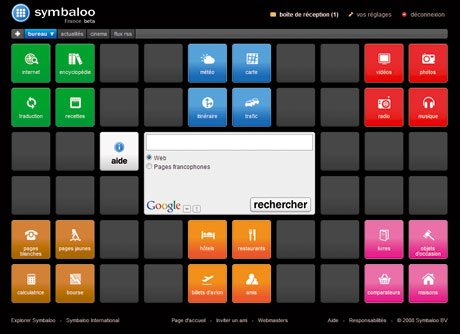 Encore en version bêta, ce portail à personnaliser joue la carte de la simplicité. Des boutons colorés sont répartis autour d’une boîte de dialogue unique. Un clic sur un bouton active un widget qui s’affiche alors dans la boîte