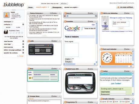 Encore en version bêta lors de la rédaction de ce dossier, Bubbletop a été mis au point par Orange. Malgré quelques soucis dordre esthétique (avec des modules qui prennent plus de place que nécessaire), les premiers modules disponibles