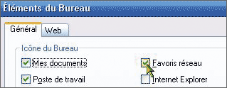 Bureau, cliquez sur le bouton Personnalisation du Bureau. Dans la partie supérieure de la fenêtre suivante, cochez la case Favoris réseau. Cliquez enfin sur OK deux fois de suite pour