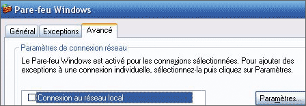 case Ne pas autoriser d’exceptions est décochée. Passez ensuite à l’onglet Avancé et décochez la ligne Connexion au réseau local.