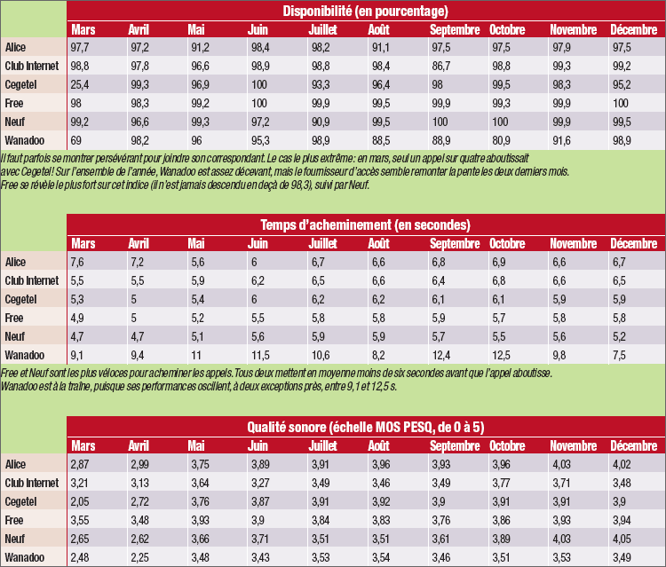 absent notoire, Tele2 : ce fournisseur d’accès propose bien des services de téléphonie, mais il s’agit de téléphonie commutée classique. Ces tests mesurent trois indices :