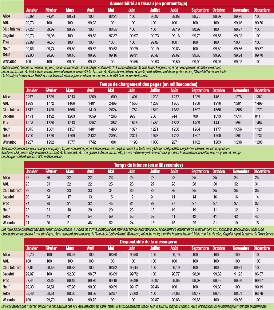 la régularité de chaque fournisseur d’accès et de sa rapidité à réagir en cas de problème technique sur son réseau.