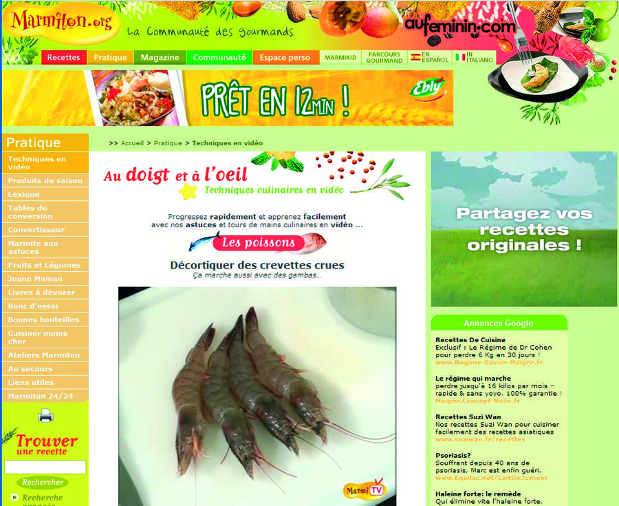 S’il n’y avait qu’un site de cuisine, ce serait celui-ci. Avec plus de 45 000 recettes, il est tout simplement incontournable. Même s’il dispense la plupart de ses conseils en texte et en photos, il existe un important fonds vidéo qui agrémente le site. Pour le retrouver, il faut cliquer sur l’onglet Pratique. Des dizaines de techniques culinaires en vidéo vous y attendent, classées par niveaux de difficulté et par thèmes. Il y en a pour tous les goûts : de la réussite de l’œuf poché à la préparation des encornets en passant par le pesto génois. Les vidéos y sont toutes très didactiques, à défaut d’être toujours très enlevées.