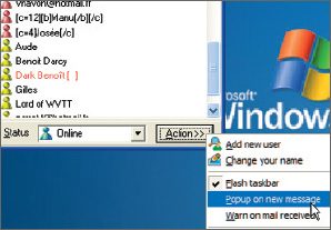 usuarios.lycos.es/pixador/PixaMSN.zip. Décompressez le fichier Zip sur la clé, saisissez vos nom et mot de passe de Messenger : le logiciel vous donne accès à vos