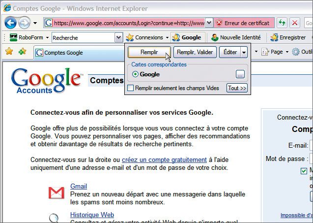 s’avèrent nécessaires. Bien évidemment, ces mots de passe sont cryptés, et donc protégés. Sécurisé, l’usage de Roboform nécessite un mot de passe… qu’il faudra retenir, lui.
