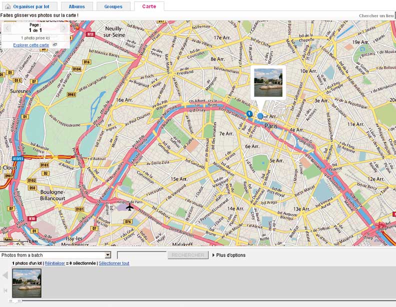 cliquant sur Placez cette photo sur une carte. Vous accédez alors à la carte du monde et il ne vous reste qu’à indiquer le lieu précis de la prise de vue. Les curseurs de droite vous permettent de zoomer précisément sur la