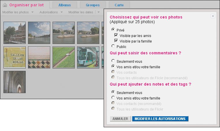 contraire, cliquez sur Tout le monde pour que chacun puisse en profiter. Pour modifier les droits d’accès d’un grand nombre d’images, mieux vaut passer par l’organisateur, qui autorise un traitement par lots.