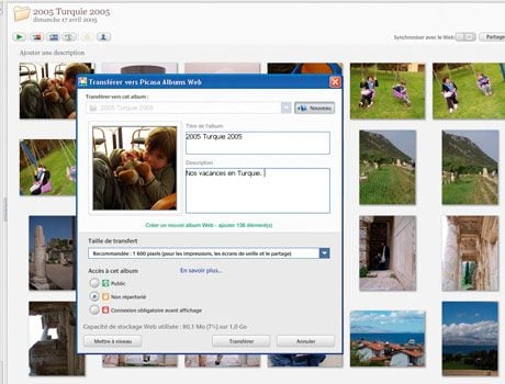 pouvez également ajouter un bref descriptif, par exemple Nos vacances en Turquie.3- Choisissez ensuite la taille des photos. Plus elles sont lourdes et plus le transfert sera long. Optez, comme il vous est conseillé, pour 1 600 pixels. Les personnes avec qui vous partagez vos photos