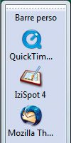 créée. Avec le bouton droit de la souris, glissez sur cette nouvelle barre les icônes des éléments de votre choix : dossiers, documents, programmes, raccourcis vers un site Web… Lorsque vous relâchez le bouton de la souris, un menu