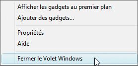 Démarrer le volet Windows en même temps que Windows. Validez avec OK. Cliquez ensuite avec le bouton droit sur la surface du volet. Dans le menu contextuel qui s’affiche, choisissez la commande Fermer le volet
