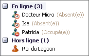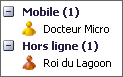 Etape 1Par défaut, vos contacts sont répartis en deux catégories : En ligne et Hors ligne.