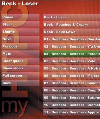 Ecoutez de la musiqueLancez MyHTPC. Avec les flèches directionnelles du clavier, sélectionnez Musique et tapez deux fois sur entrée. Puis sélectionner my Music et tapez sur entrée. MyHTPC affiche le