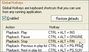 mettre l’écoute en pause ou la reprendre. Mieux vaut activer les raccourcis claviers globaux : ils fonctionnent même si la fenêtre du logiciel est réduite en icône. Dans Winamp, activez l’onglet Global Hotkeys. Cochez l’option