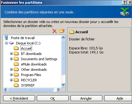 deux partitions seront alors réunies sous le nom de la partition hôte (avec sa lettre).