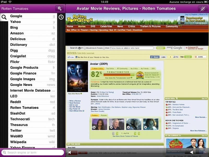 Certes Google trouve réponse à la majorité des requêtes. Quant aux chercheurs les plus exigeants, ils ont généralement recours aux méta-moteurs. Mais d’un jouet mobile comme l’iPhone ou l’iPad, on attend d’abord des recherches simples et rapides. C’est ce que fait cette application – en anglais – seulement. Elle propose plus d’une vingtaine de services de recherche : de Google à Imdb (Internet Movie Database), en passant par YouTube ou Yahoo!, et quelques autres moins connus chez nous qu’on sélectionne d’une tape avant de lancer la recherche. Ou en tapant les deux ou trois caractères de son raccourci clavier suivis du mot ou de l’expression à rechercher. L’application conserve un historique des recherches. Avantage à la version iPad qui affiche horizontalement les moteurs à gauche et la recherche à droite dans un navigateur intégré.
