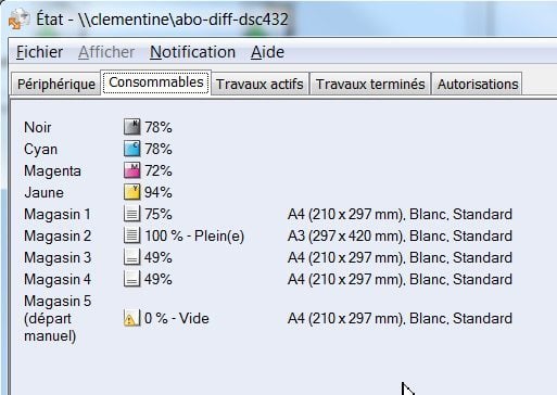 Attention : les manipulations et les informations affichées peuvent varier d’une imprimante à une autre ! Ainsi, les modèles à jet d’encre n’indiquent pas la quantité de papier disponible.