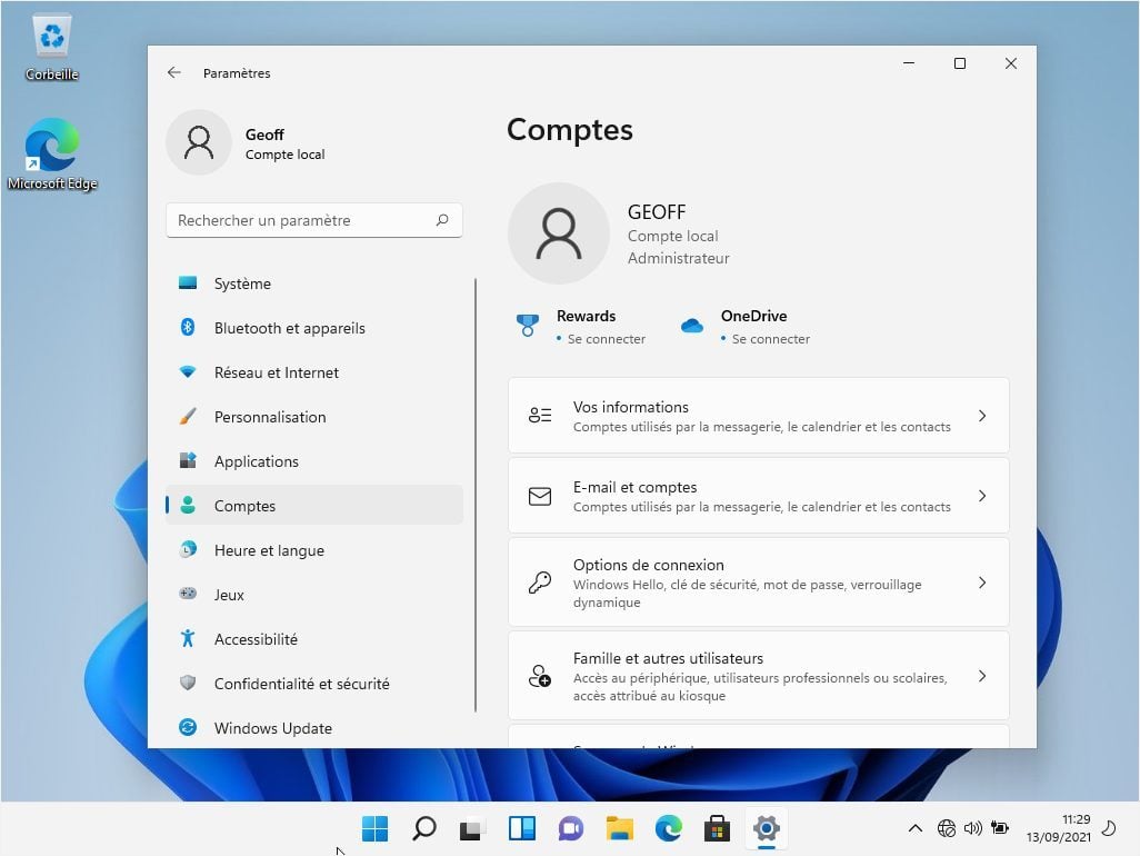 Lorsque le processus prend fin, vous arrivez sur le bureau de Windows 11 depuis un compte local.
