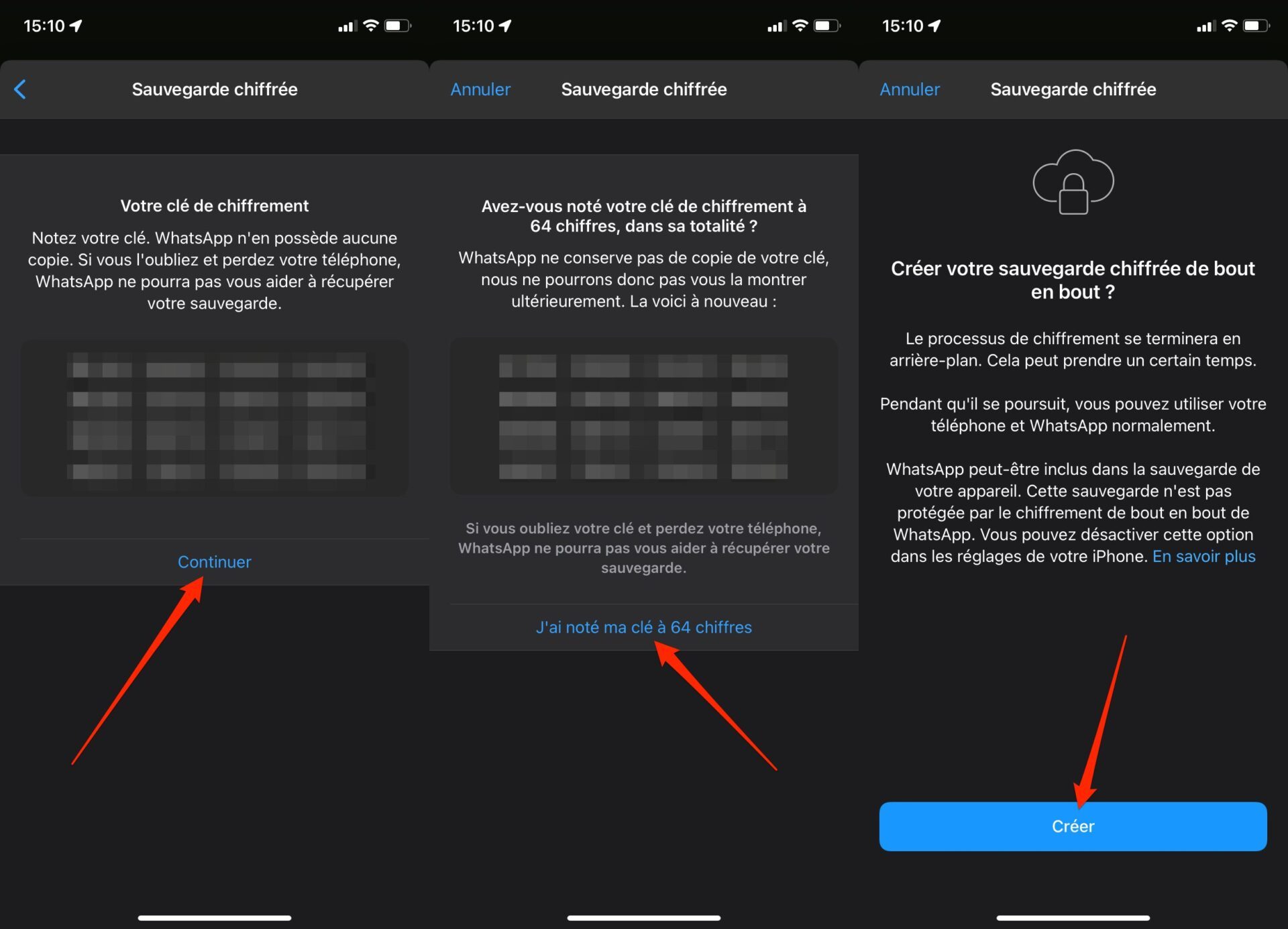 En fonction de votre choix, pensez bien à noter et conserver l’un ou l’autre en lieu sûr. Ils vous seront automatiquement demandé au moment de restaurer votre sauvegarde sur un nouveau smartphone ou après avoir réinitialisé votre appareil et réinstallé WhatsApp.