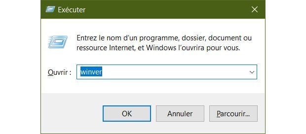 Pour connaître la version de Windows de votre machine, utilisez le raccourci clavier Windows+R, puis dans la fenêtre Exécuter qui s’affiche, saisissez winver et cliquez sur OK.