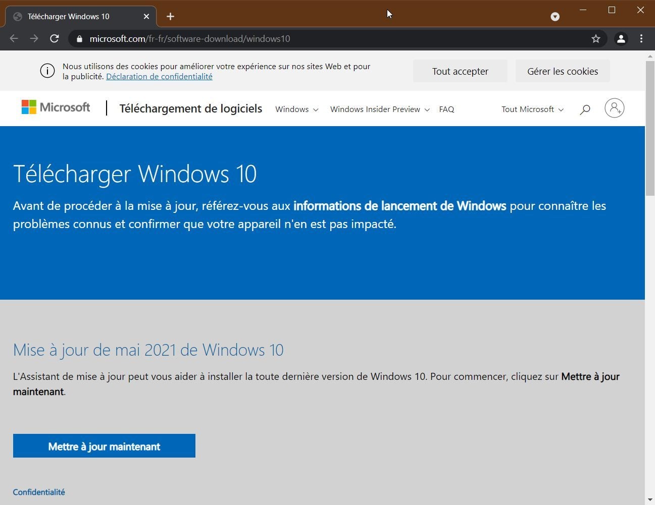 Pour lancer manuellement la mise à jour 21H1 de Windows 10, vous pouvez passer par l’Assistant de mise à jour de Windows. Rendez-vous sur cette page pour le télécharger en cliquant sur Mettre à jour maintenant.
