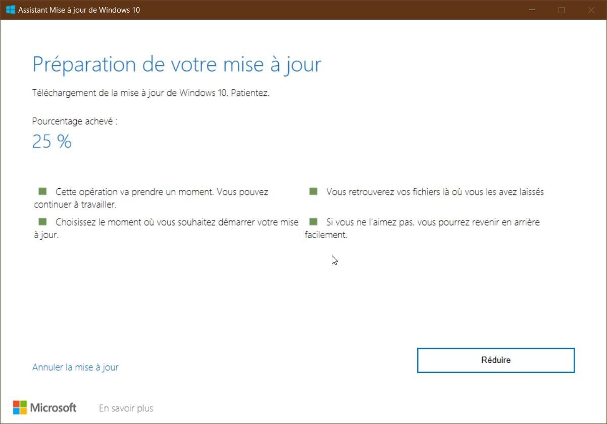 L’Assistant de mise à jour indique alors si votre machine est compatible avec la mise à jour, et lance immédiatement son téléchargement, si c’est le cas.