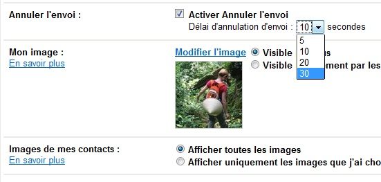 A présent, le temps de réflexion est allongé, jusqu’à 30 secondes. Gmail permet à l’utilisateur de choisir le délai de rétractation, par paliers de 10 secondes. Au préalable, il faut avoir activé l’option dans les Labs. Puis, dans l’onglet des paramètres généraux de la messagerie, sélectionner dans le menu déroulant le délai d’annulation voulu.