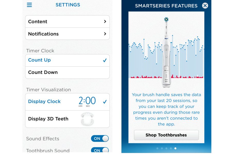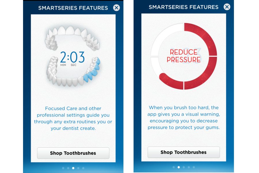 Oral B commercialise déjà aujourd’hui une série de brosses à dents pour technophiles, livrées avec un cadran appelé Smart Guide. Il s’agit d’une sorte de compteur déporté qui vous aide à respecter le temps de brossage de deux minutes recommandé par l’UFSBD (Union Française de Santé Bucco-Dentaire). Test à l’appui, à l’usage, il se révèle très pratique et même très motivant pour les plus jeunes qui se prêtent ainsi plus facilement au jeu des 3 minutes.