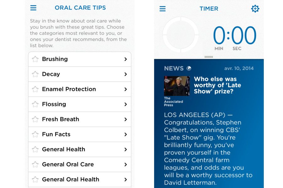 Enfin, pour vous occuper pendant le brossage, l’application affiche le fil d’info de l’AFP, la météo ou encore des conseils de brossage.