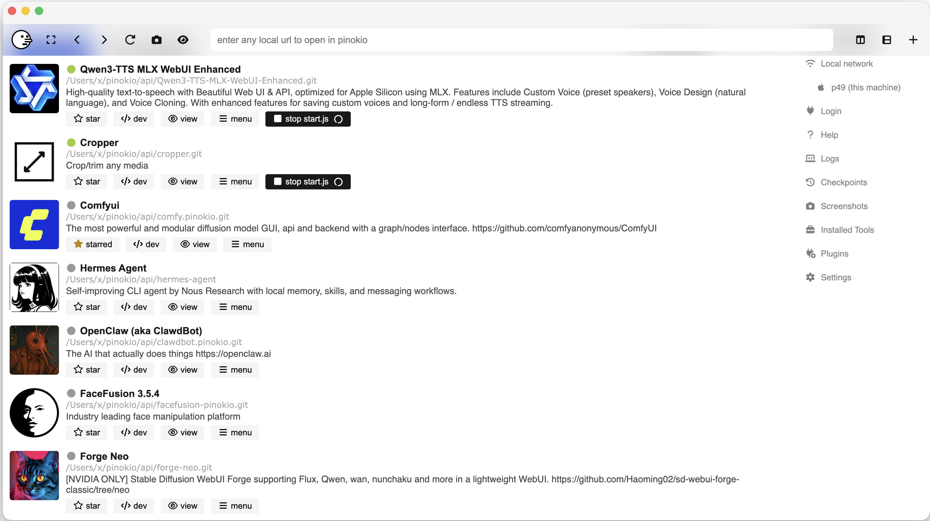 Dans les faits, le principe est plutôt simple : vous choisissez une application, vous cliquez pour lancer l’installation, et à partir de là, Pinokio s’occupe pratiquement de tout en arrière-plan. Autrement dit, il gère le téléchargement des fichiers, la configuration des dépendances et la mise en place du flux de travail. Vous n’avez donc pas besoin de taper des commandes compliquées, tout passe automatiquement par l’interface.
