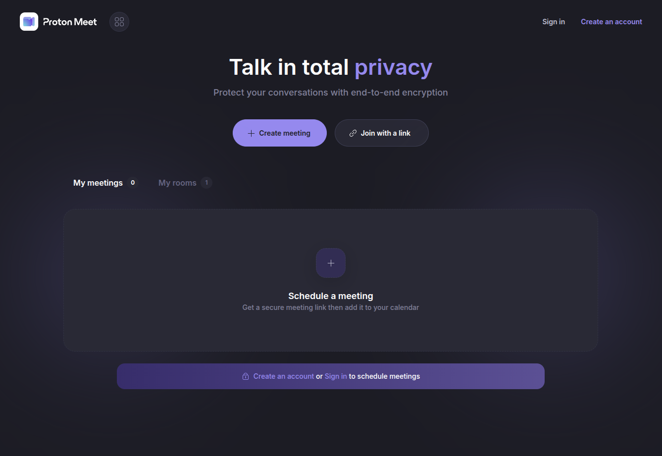 Proton Meet fonctionne directement depuis le web. Aucun besoin de télécharger un logiciel lourd sur ordinateur. Un navigateur récent suffit pour accéder à l’application web dans la majorité des situations. Cette compatibilité facilite le déploiement sur plusieurs environnements sans imposer une configuration technique particulière.
