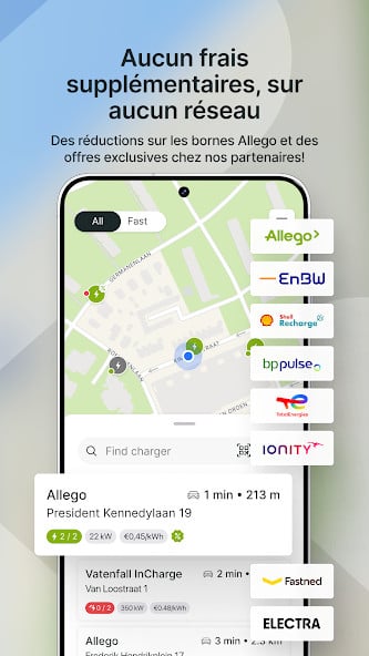 Allego est une application conçue pour centraliser et simplifier l’expérience des conducteurs de voitures électriques en Europe. Elle permet principalement de localiser les bornes de recharge et d’en vérifier la disponibilité en temps réel. Les utilisateurs ont accès à plus d’un million de points de recharge à travers le continent, incluant le réseau propre d’Allego ainsi que ceux de partenaires tiers. L’application porte le nom de Allego, un opérateur néerlandais de stations de recharge pour véhicules électriques, basé aux Pays-Bas, qui en assure également le développement.