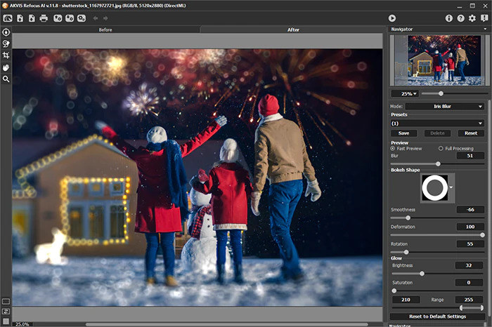 AKVIS Refocus facilite le réglage et l'amélioration de la netteté sur certains clichés. Vous disposez ainsi d'un système "avant/après" qui vous permet de visualiser l'ajustement des réglages de la mise au point, de la sensibilité, de l'intensité, et de l'ajout de flou sur certaines parties de la photo pour accentuer la netteté d'une autre zone (le 1er plan par exemple).