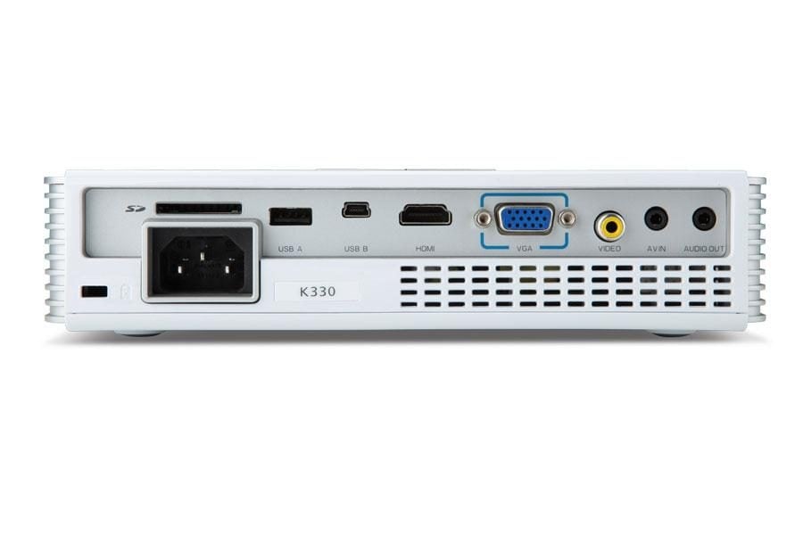 Le K330 d’Acer est un projecteur DLP/LED affiche une définition de 1 280 x 800 pixels et une luminosité de 500 lumens. Il pèse 1,2 kg et peut lire directement le contenu des cartes mémoire SD et des clés USB.