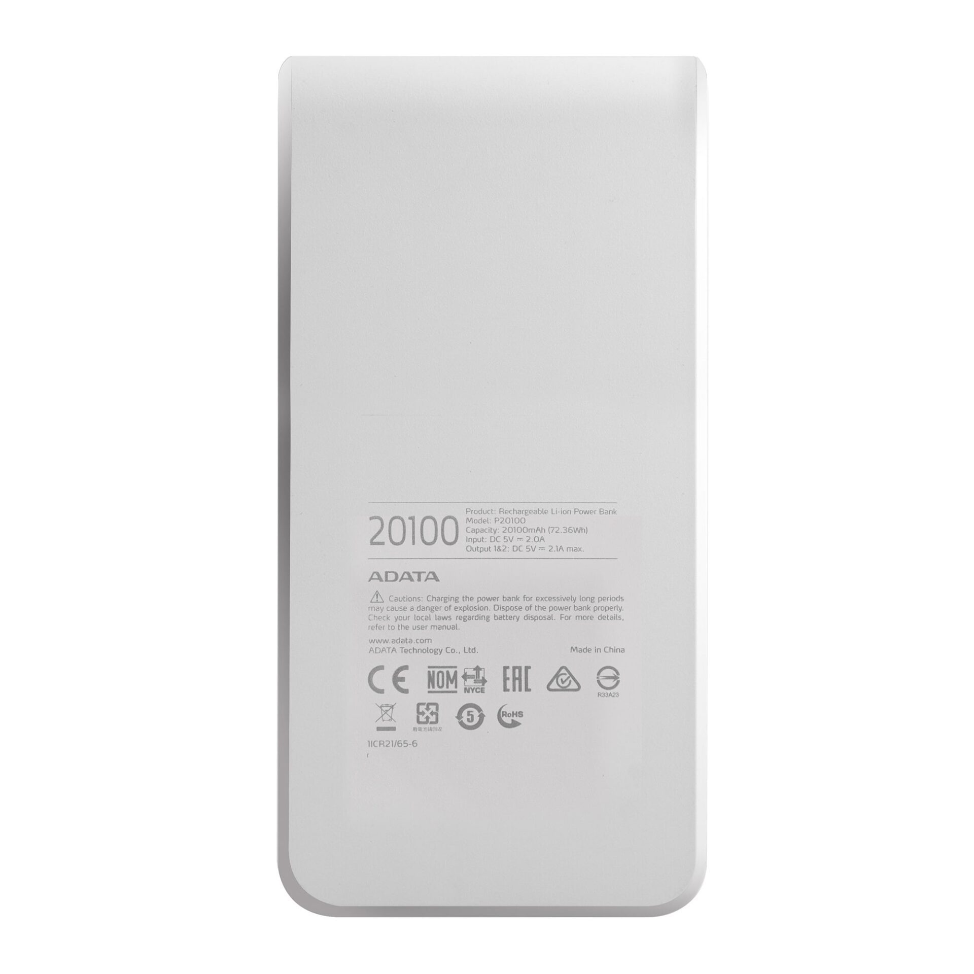 ADATA P20100, Blanc, Plastique, Mobile/smartphone, Tablette, LED, Lithium-Ion (Li-Ion), 20100 mAh