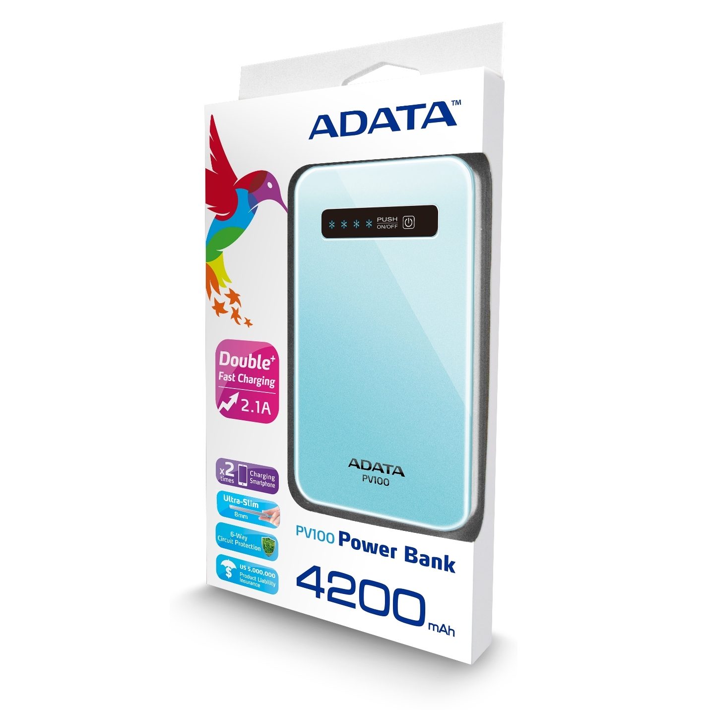 ADATA PV100, Bleu, Plastique, Caméra Numérique, Lecteur e-book, GPS, Téléphone portable, MP3, MP4, PDA, Consoles portables, Tablet, Statut, Micro-USB, Lithium Polymère (LiPo)